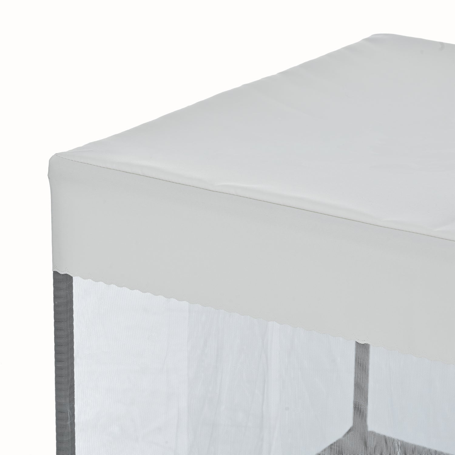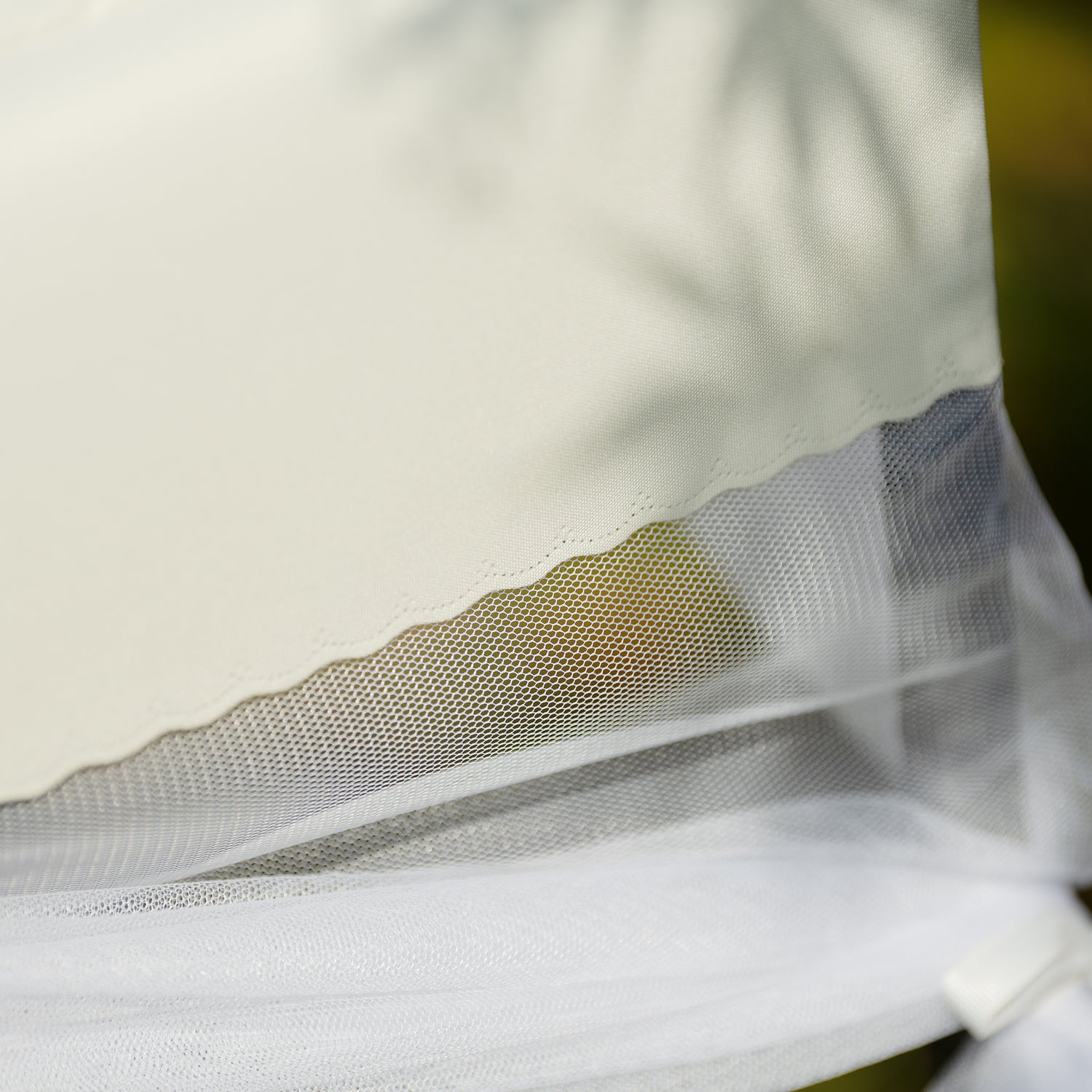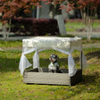 - Elevated & Covered: An elevated design prevents dirt and water soakage from underneath so you can keep the interior clean. Mesh Curtain provides shelter for your lovely pets from harsh sunlight and also mosquito or flies to give you lovely baby a good rest outside.
