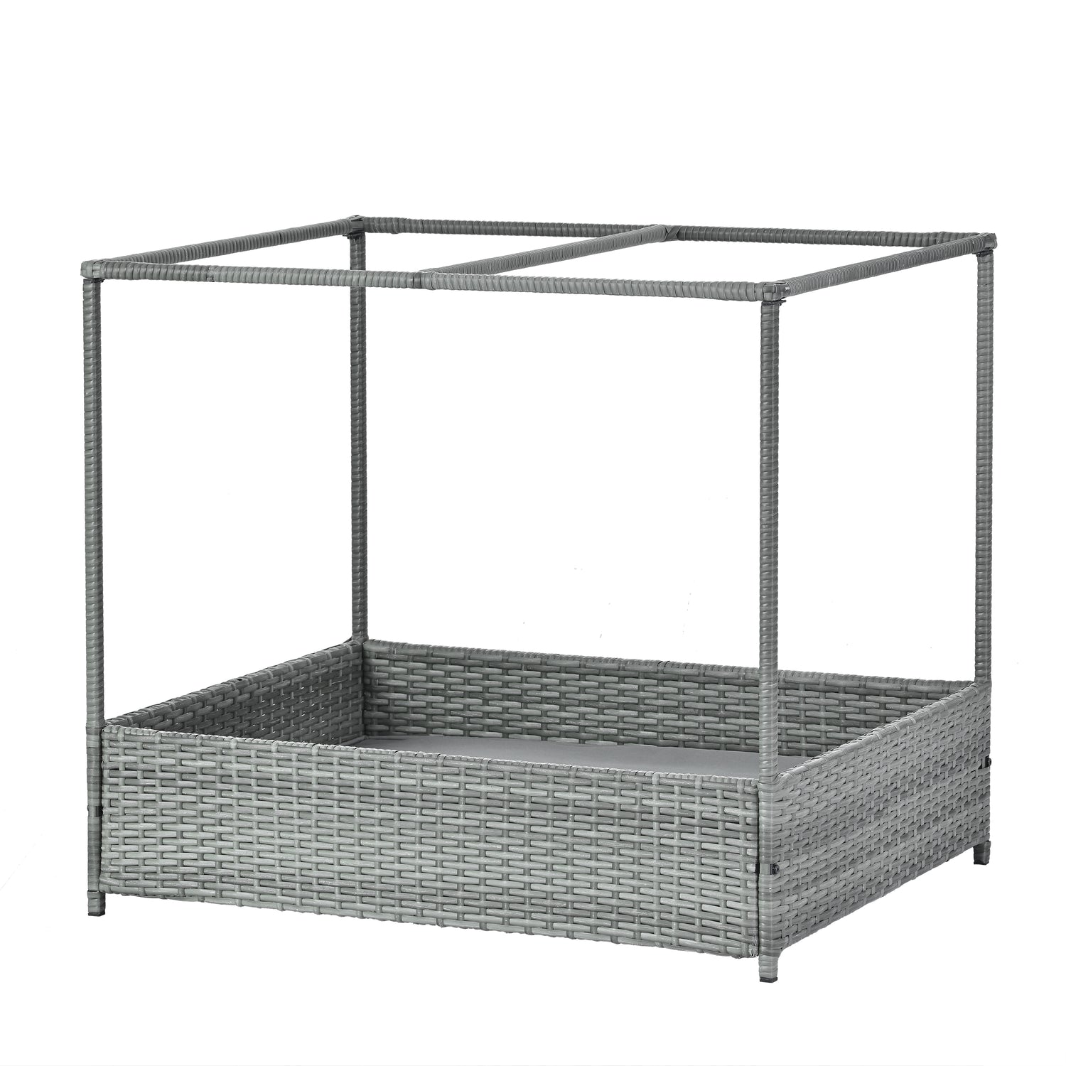 The frame is make of square metal tube, rattan with fluffy PE wicker, the cushion is 2' thickness, with stuffing of 100% polyester fiber cushion, it will survive well from pets scratch. Specifications: Color: Dark Grey Material: PE Wicker, Metal Tube, Plastic End Cap. Product Dimensions: W35.8*D28*H31.90 Inches Weight: 22.05 lb Package Included: 1 x Patio Pet Bed