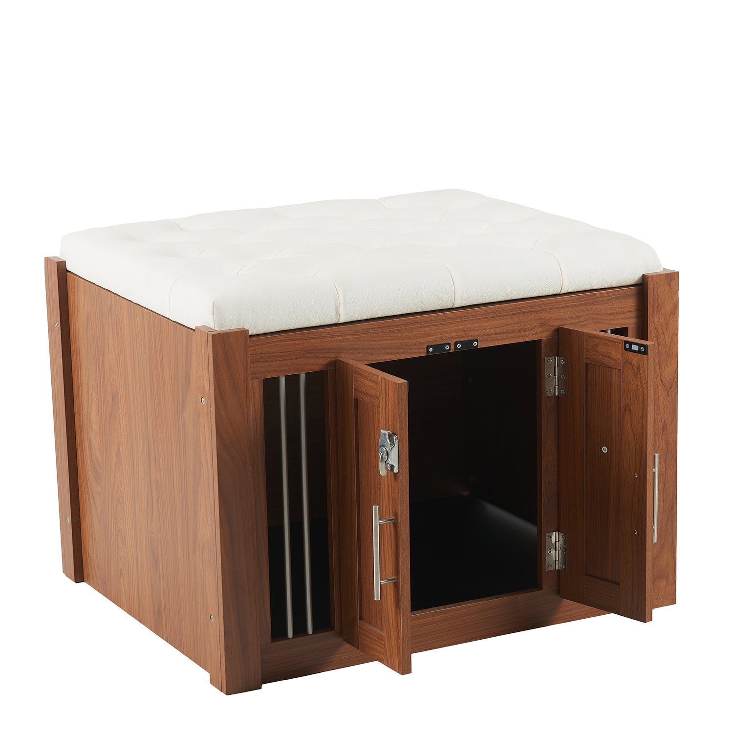 - EASY UPKEEP: This dog crate bench design prioritizes your convenience. With a removable cushion and easily accessible doors, cleaning and maintenance are effortless, promoting a clean living space for your pet.