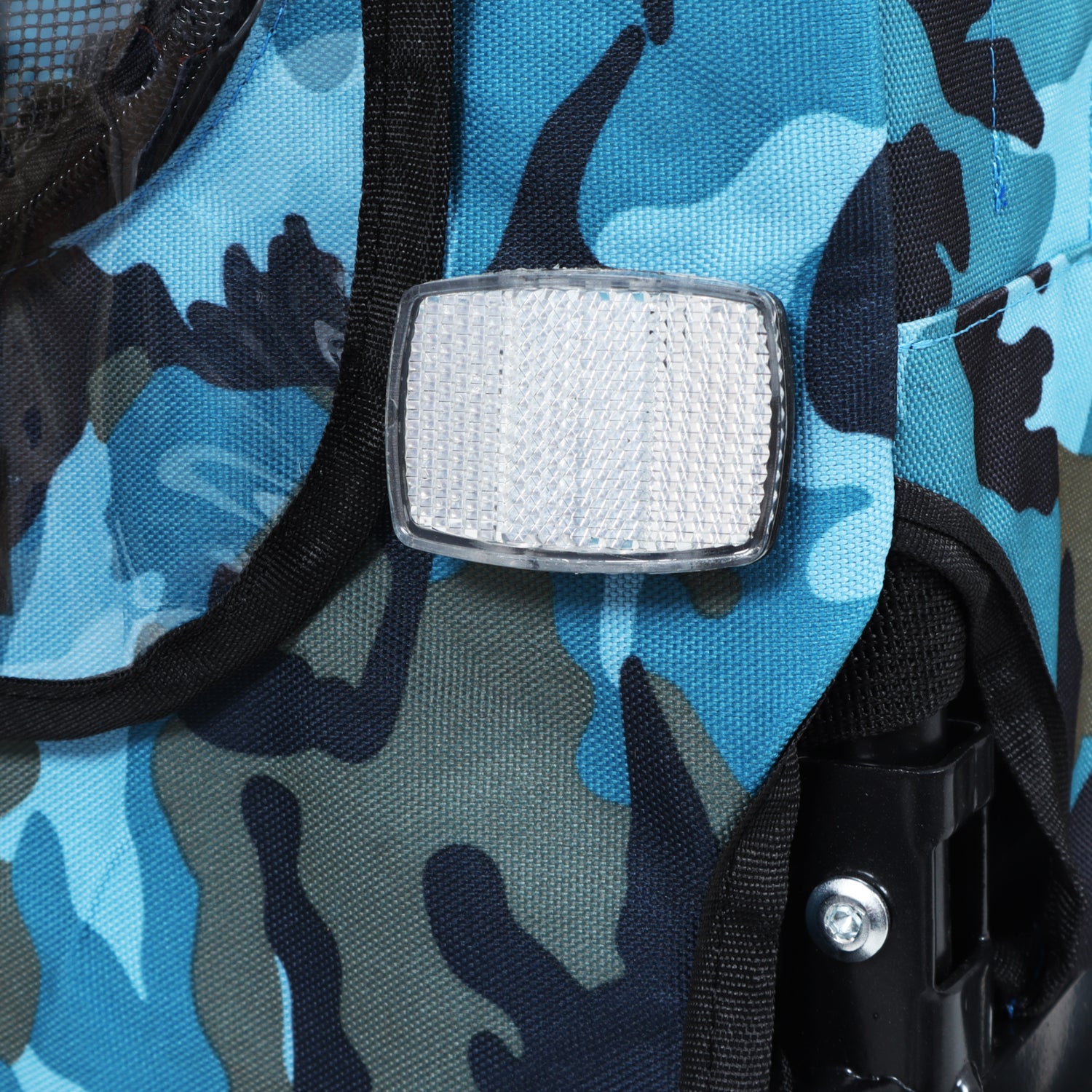 - Enhanced Safety & Secure Design: A built-in safety belt anchors your pet snugly to prevent escapes, while a crash-resistant guard and high-visibility safety flag add extra protection. Reflective strips along both sides boost nighttime visibility, ensuring you and your pet stay seen during dusk or dawn rides.