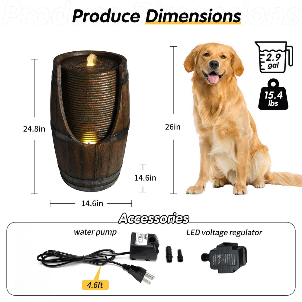 - Farmhouse Barrel Style:Realistic wood barrel finish adds rustic charm a perfect outdoor water fountain and garden water fountain for patio porch yard deck and cottage style landscaping