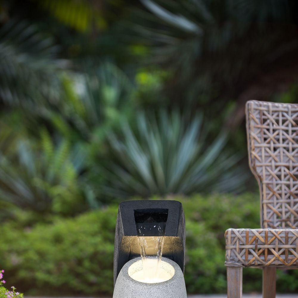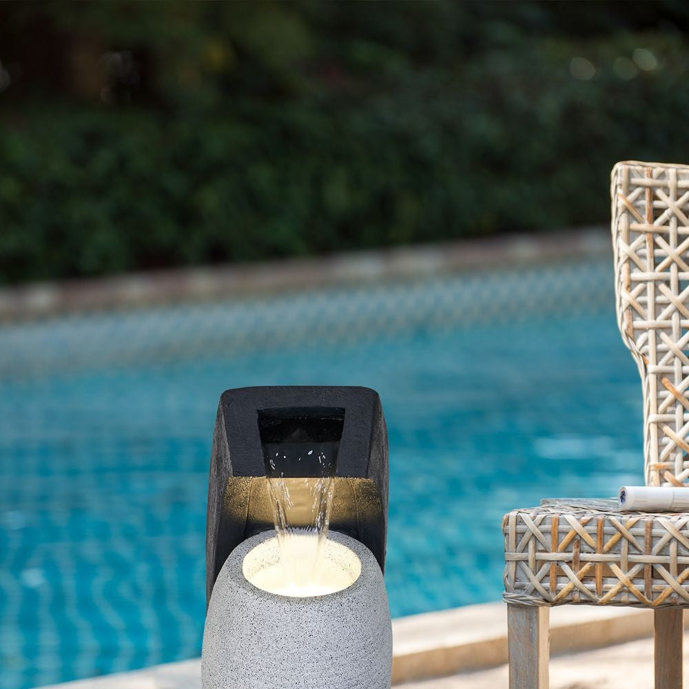 This water fountain features a vase-inspired design perfect for enhancing indoor or outdoor spaces with a touch of elegance and tranquility. Its integrated light and pump create a soothing water feature suitable for patios, living rooms, or garden areas.
