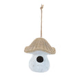 Transform your outdoor space into a whimsical wonderland with our Mushroom Birdhouse. Crafted from durable polyresin with intricate fabric details, this birdhouse boasts a trendy wicker-style top that adds a touch of charm to any garden. The soft white and beige tones, paired with a distressed finish, create a rustic yet stylish look that will enchant your guests.