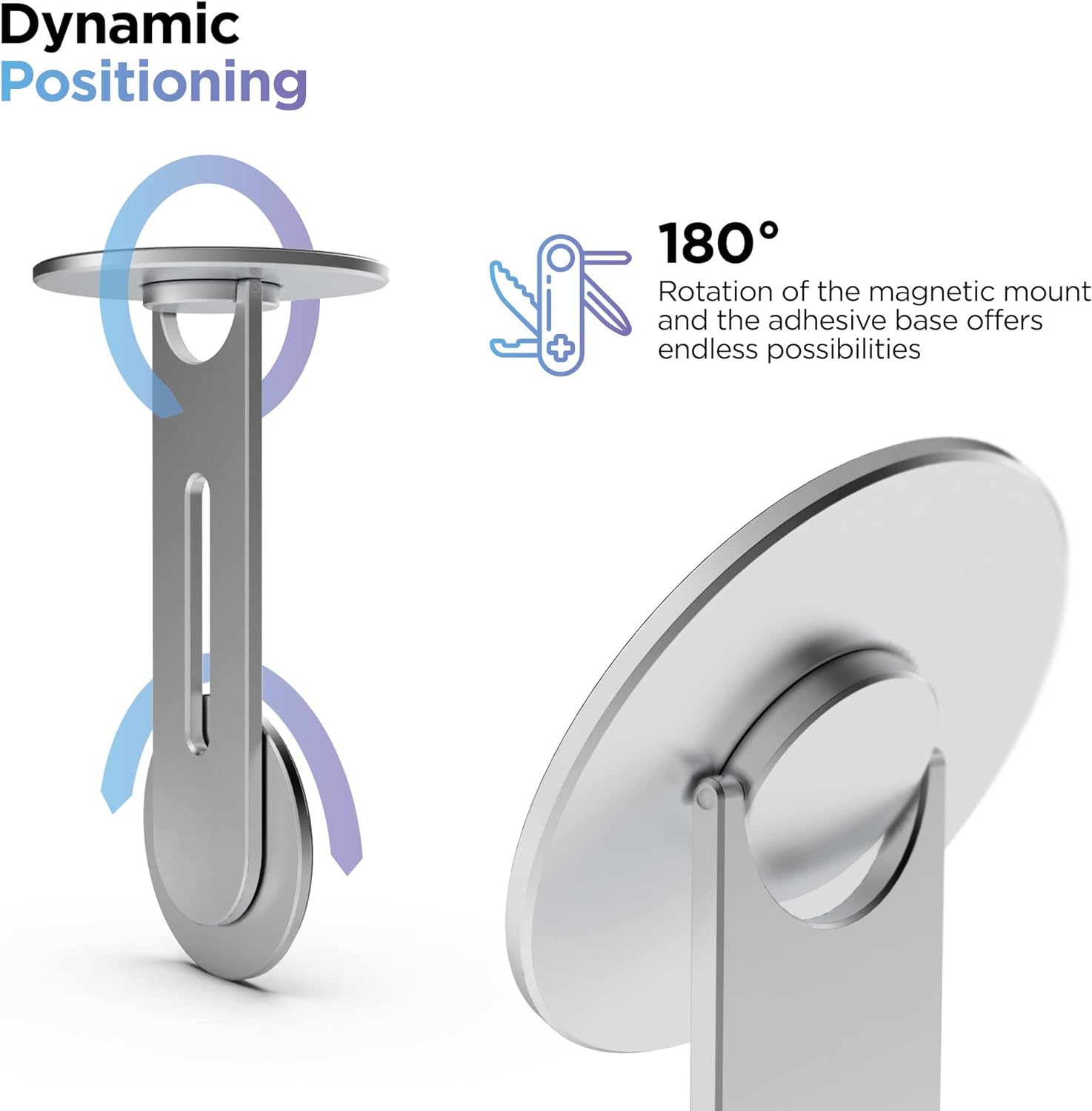 - With 180 degree rotation of the arm as well as the pivoting magnetic mount, you can adjust your phone to the precise angle you need, and then discreetly fold the mount away when not in use.