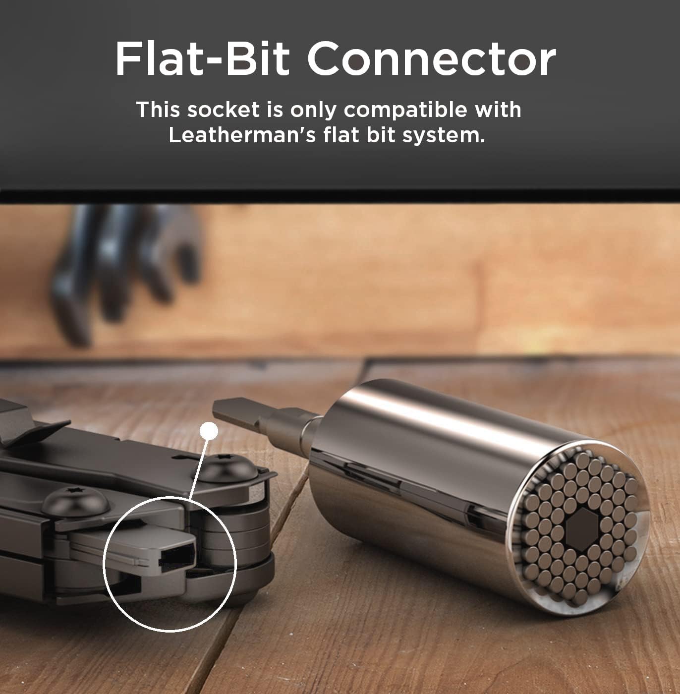 - A must have accessory add-on for Leatherman users! The Universal Socket adapter compatible with all "Flat-Bit" multi-tools to help you get the job done right.