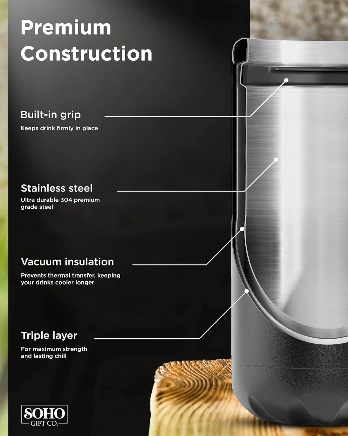 - Built-in grip holds slim cans and standard sized bottles securely in place - perfect for a bottle of beer or can of hard seltzer.