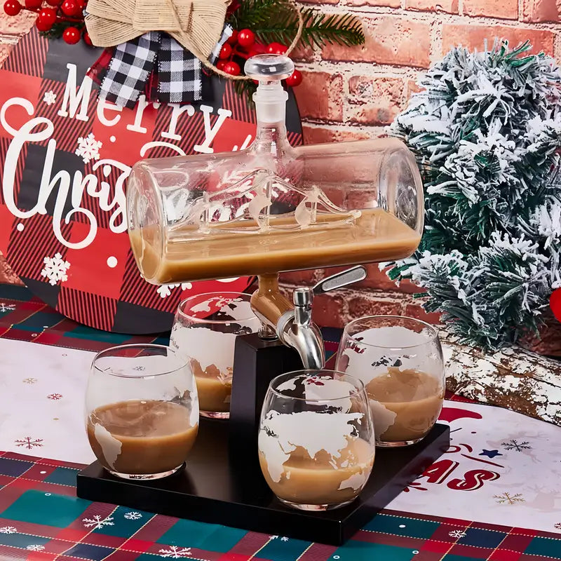 Set sail on your entertaining adventures with this nautical-themed sailboat decanter and glass set. Housed in a wooden frame, it’s a stylish statement piece that combines craftsmanship with the spirit of the sea.