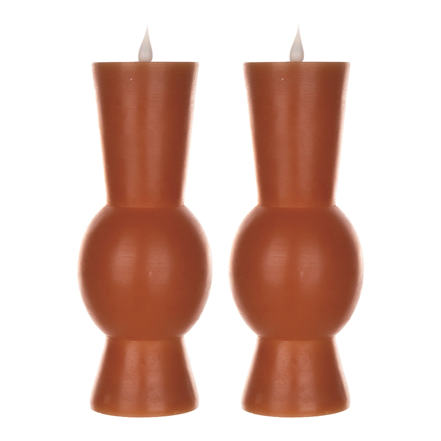 Illuminate your home with this stunning set of Simplux Designer LED Candles. Featuring an abstract tapered shape, warm orange finish, and moving flame accent, this set is a great fit for your contemporary or mid-century modern style of home decor. The set is perfectly crafted with wax and plastic to give it a realistic look. Display the set in a pair of lanterns or candle holders to complete the look.