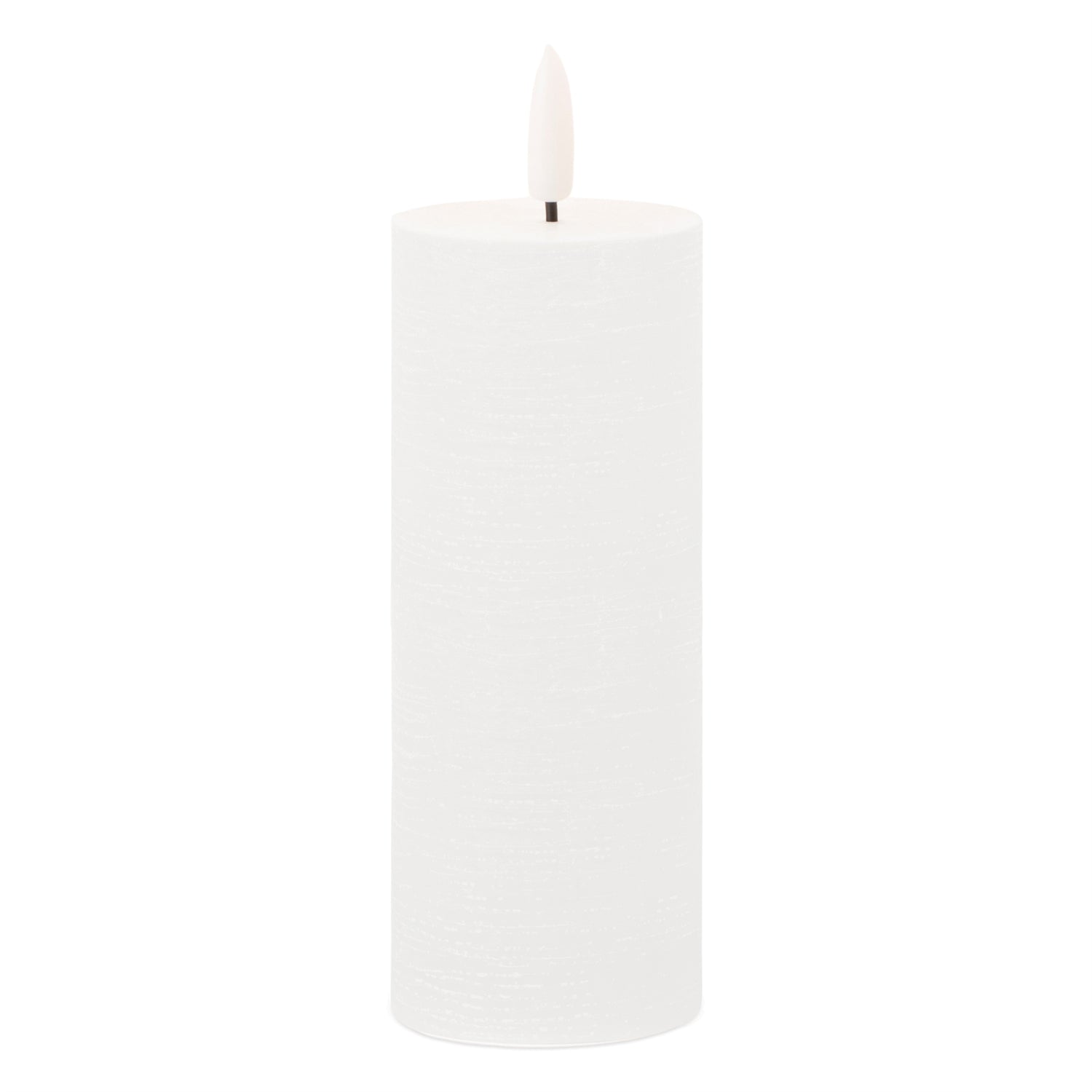Illuminate your home with the elegant FIA Wick White Pillar Candles. Featuring FIA Wick technology, these candles offer the appearance of a real flickering flame, without the safety concerns of traditional candles. The cool white tone with a smooth finish adds a clean, modern look to any room. Sold in a set of four pieces, these candles require 2 AA batteries (not included). A universal remote is included, which is compatible with all FIA Wick candles for easy control.