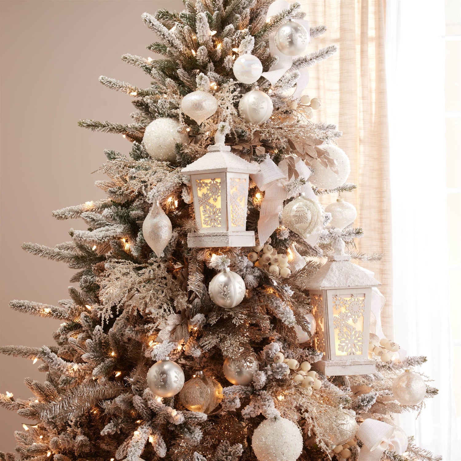 - Charming Winter Design – Classic white finish with snowy flocking and intricate snowflake cut-outs.
