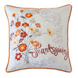 A seasonal accent of refined artistry, this embroidered pillow celebrates the harvest season with rich, autumnal charm. The 20" square design is adorned with a vibrant medley of fall florals, rendered in intricate embroidery that swirls across the surface with graceful precision. At the center, the word “Thanksgiving” is elegantly stitched in deep red script, offering a warm and welcoming sentiment.