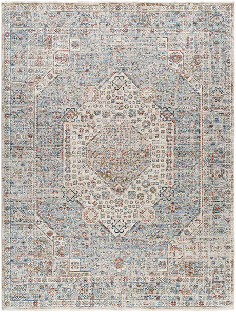 Nimue Cream & Blue Bordered Area Rug - Clearance