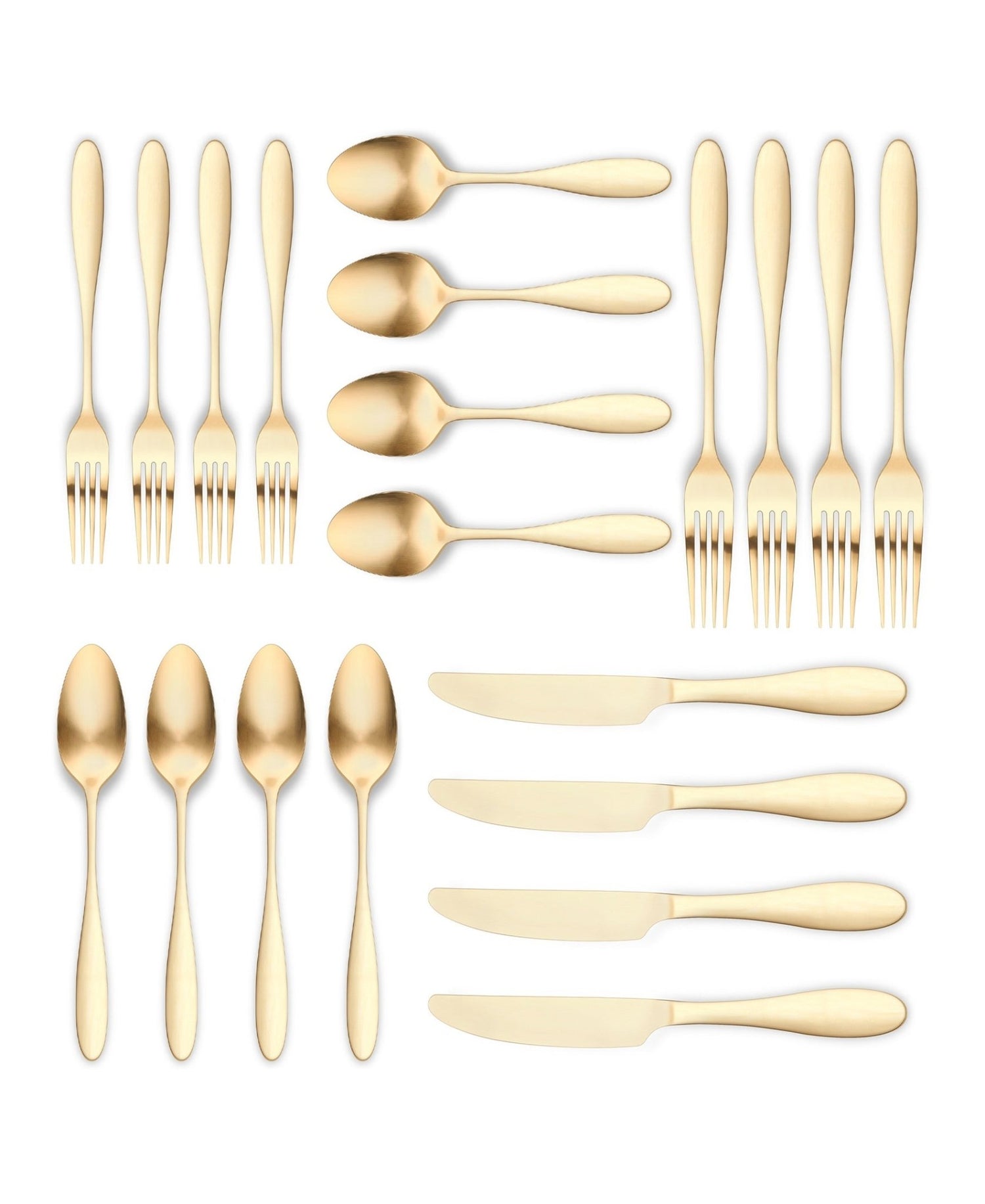 Complete Service for 4: Includes 4 of each – salad forks, dinner forks, dinner knives, dinner spoons, and teaspoons