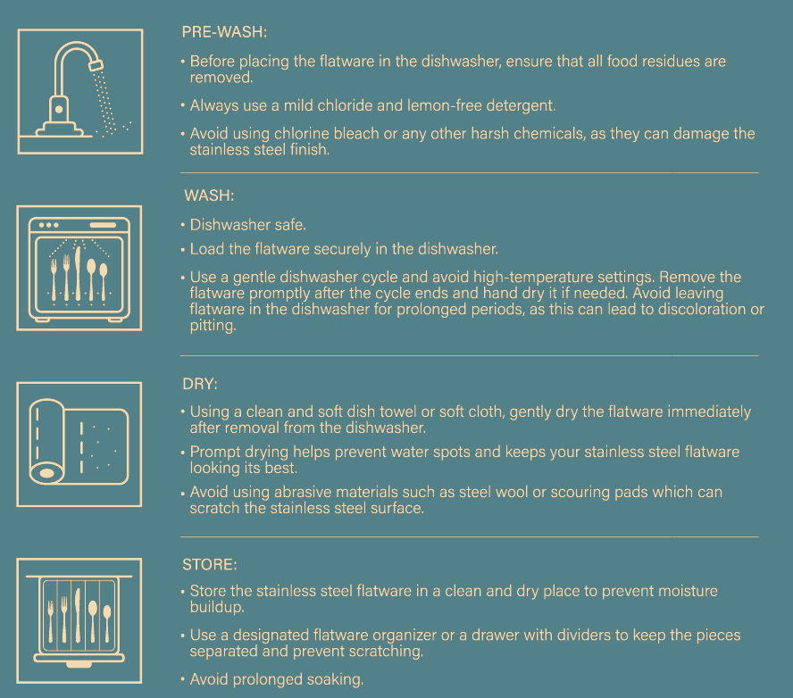 Ideal for casual meals or formal occasions, the set includes four complete place settings, each consisting of a salad fork, dinner fork, dinner knife, dinner spoon, and teaspoon. Balanced in hand and resilient by design, this collection is made to elevate daily use while standing up to years of enjoyment.