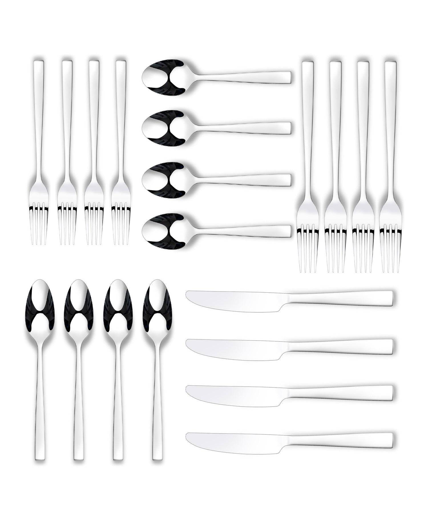- Made from 18/0 Stainless Steel. Includes 4 each: salad forks, dinner forks, dinner knives, dinner spoons, and teaspoons.