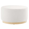 Delight in the elegance of the Tilden 29" Round Upholstered Ottoman, an ideal accent ottoman for modern homes, offices, or cozy apartments. Upholstered in stain-resistant performance velvet with French piping trim, this large ottoman footstool offers both luxury and durability. Its tailored silhouette complements contemporary d e9cor, while the dense foam padding provides versatile use as a comfortable ottoman seat, large footrest, or living room ottoman coffee table. Resting on a rubberwood plinth base with non-marking glides, this ottoman table protects your floors from damage. Arriving fully assembled, the Tilden performance velvet ottoman combines chic style and functionality. Weight Capacity: 506 lbs.
