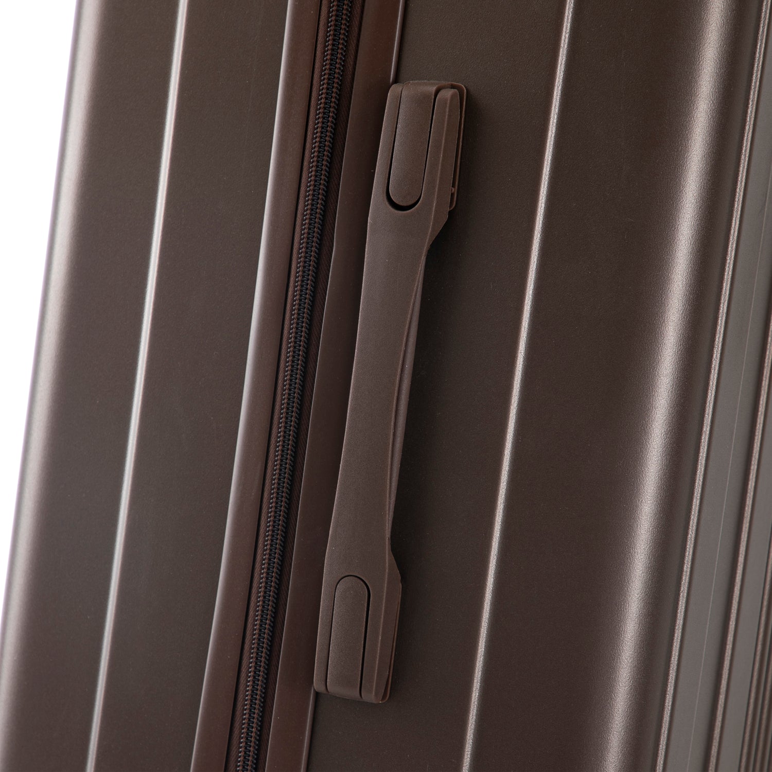 - Modern Appearance?The stylish and smooth vertical stripe design of the rolling luggage makes it more resistant to pressure and wear and brings a good mood to your journey. It includes four molded side feet, they allow the luggage to remain upright even when standing on its side.