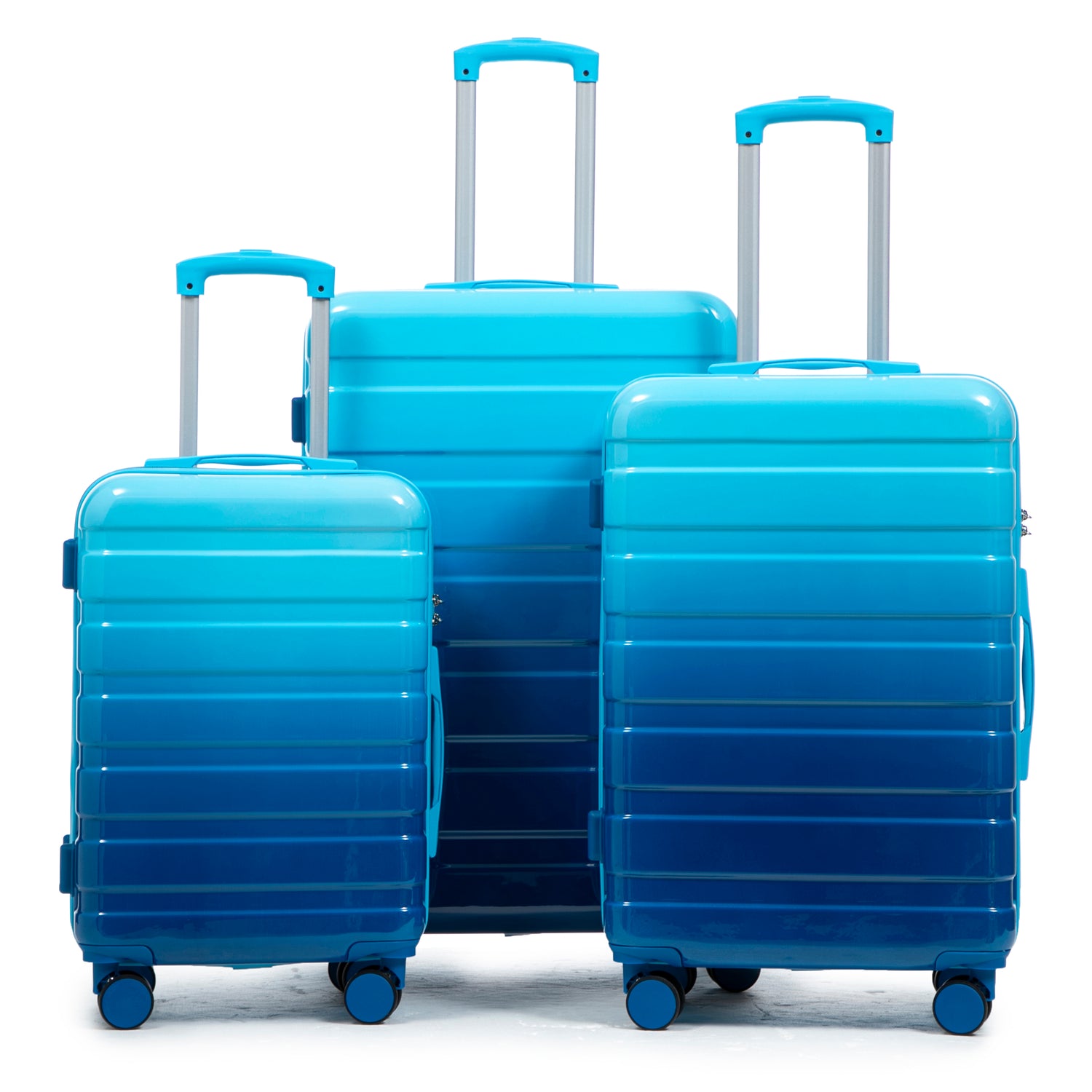 20'/24'/28' 3 pcs/set in PC Spinner Wheel Luggage, Carry on Suitcase, With Gradient Color and Combination Lock(Navy+Light Blue)