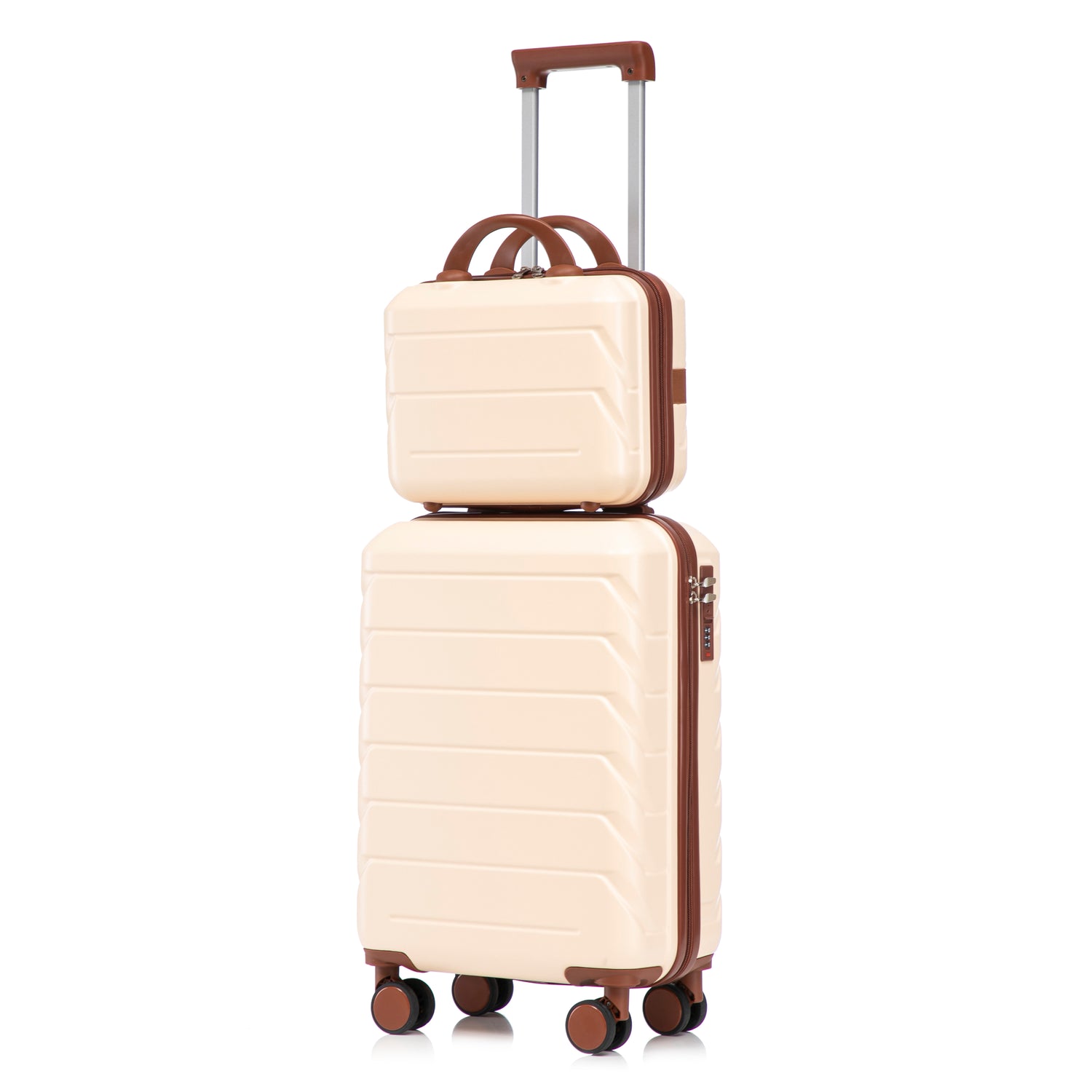 14'/20' 2 pcs/set in ABS Spinner Wheel Luggage, (Beige)