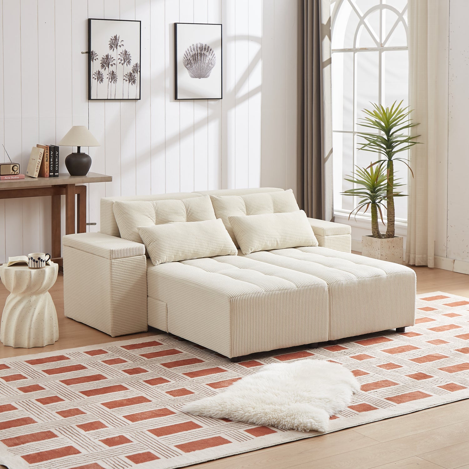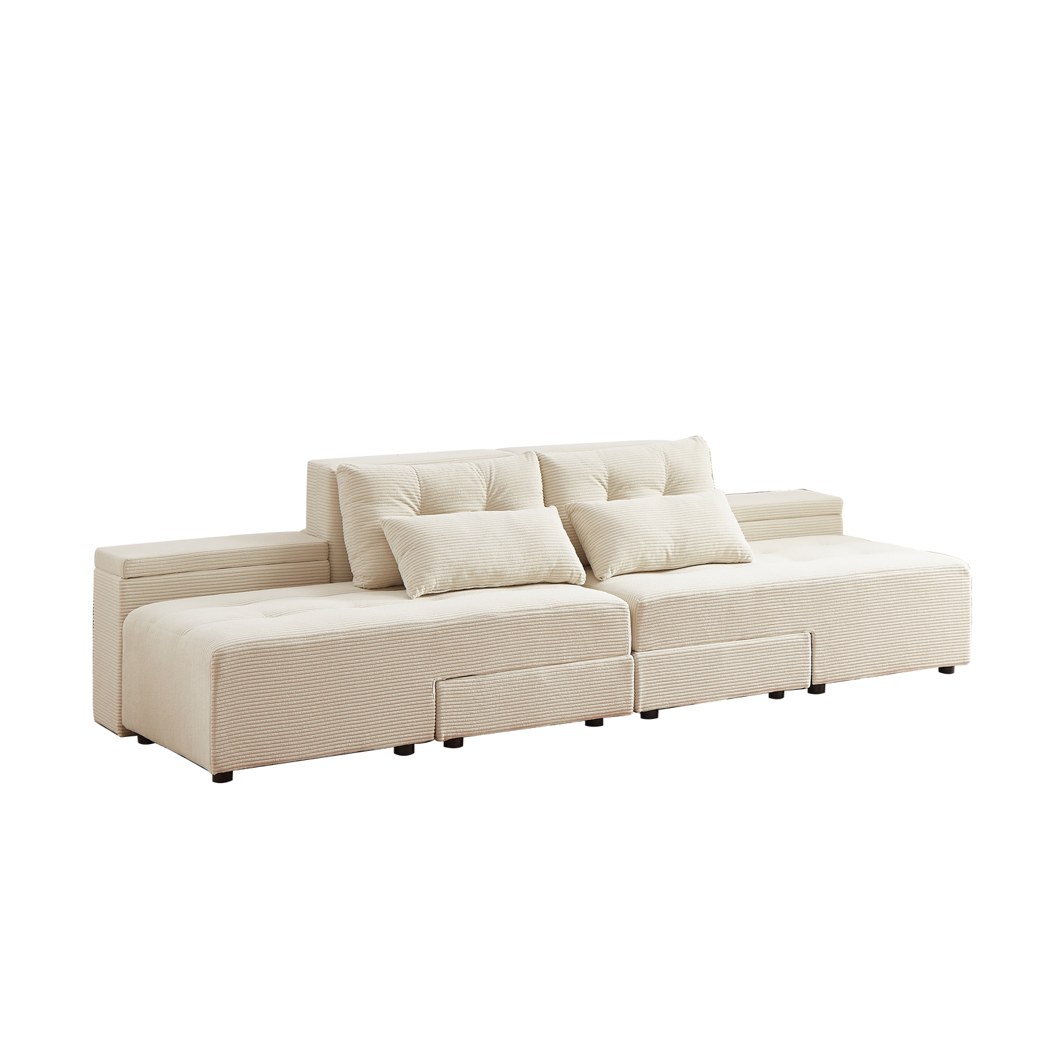 Convertible 3 in 1 Sleeper Sofa and Sectional Sofa with 4 Storage Space for Living Room,Corduroy Couch With 4 pillows,Corduroy