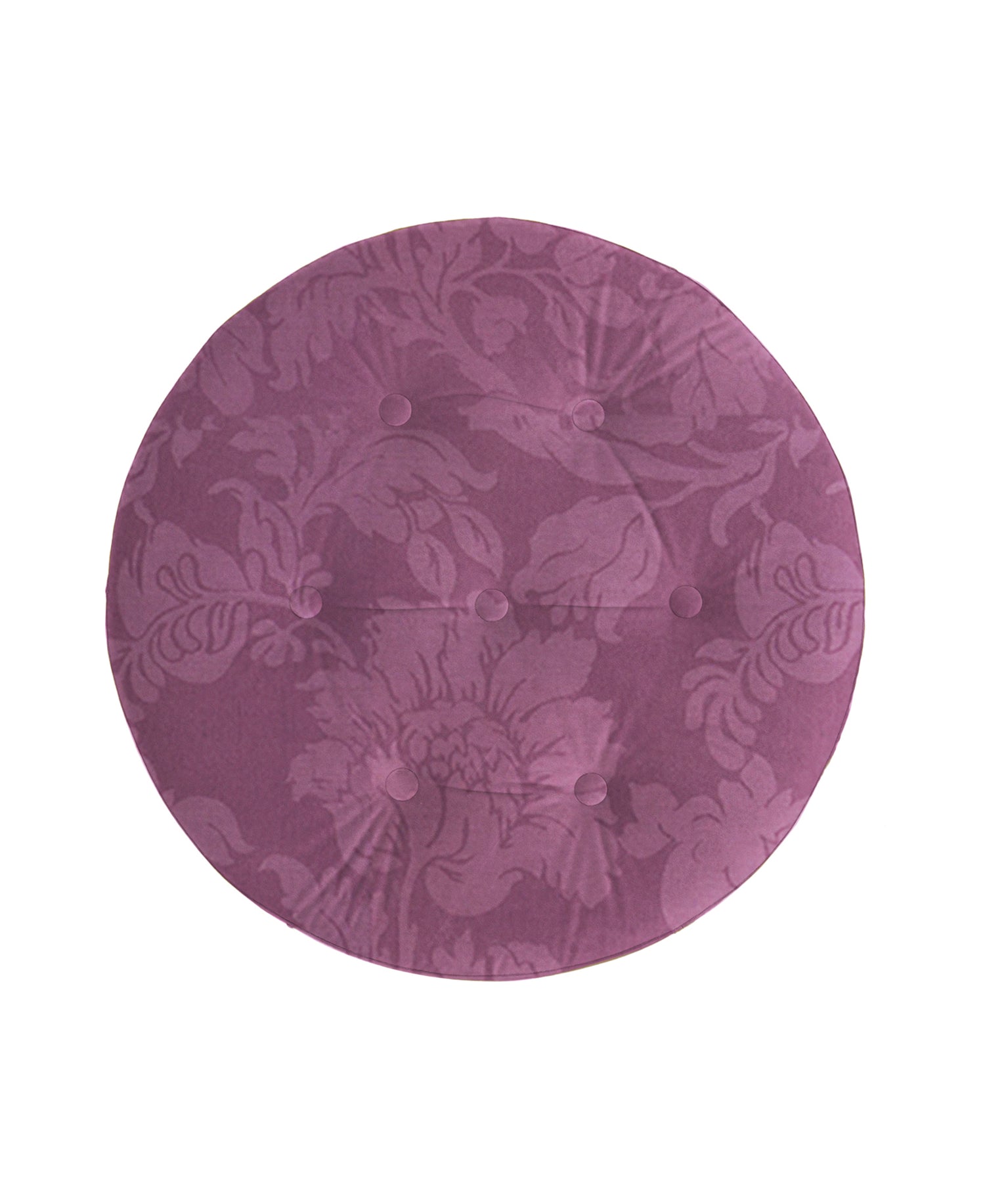 Yolanda 24' Round Upholstered Accent Ottoman, Purple Floral Sateen Jacquard with Gold Trim