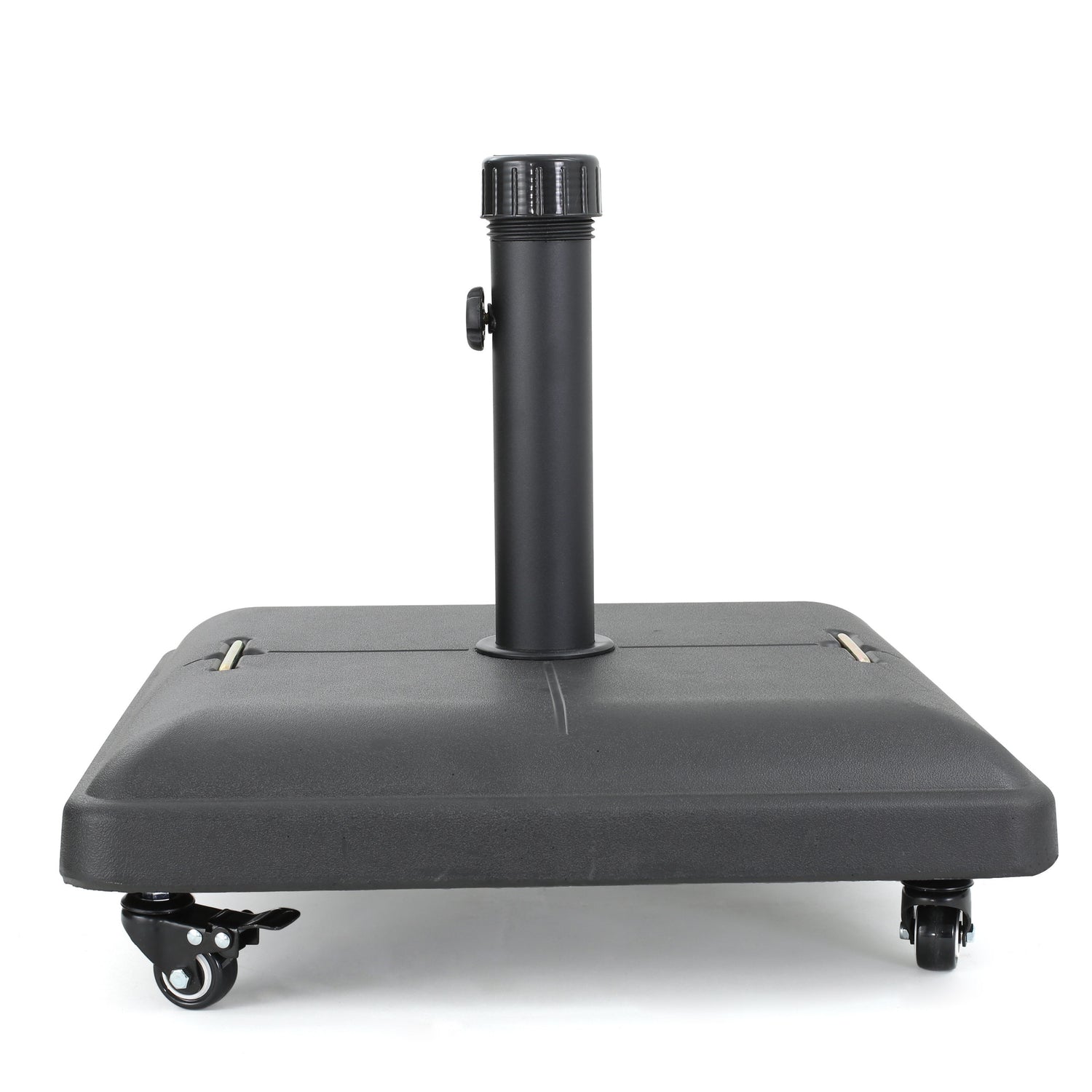Modern Square Wheelie Umbrella Base Black Concrete 19.69 Inch