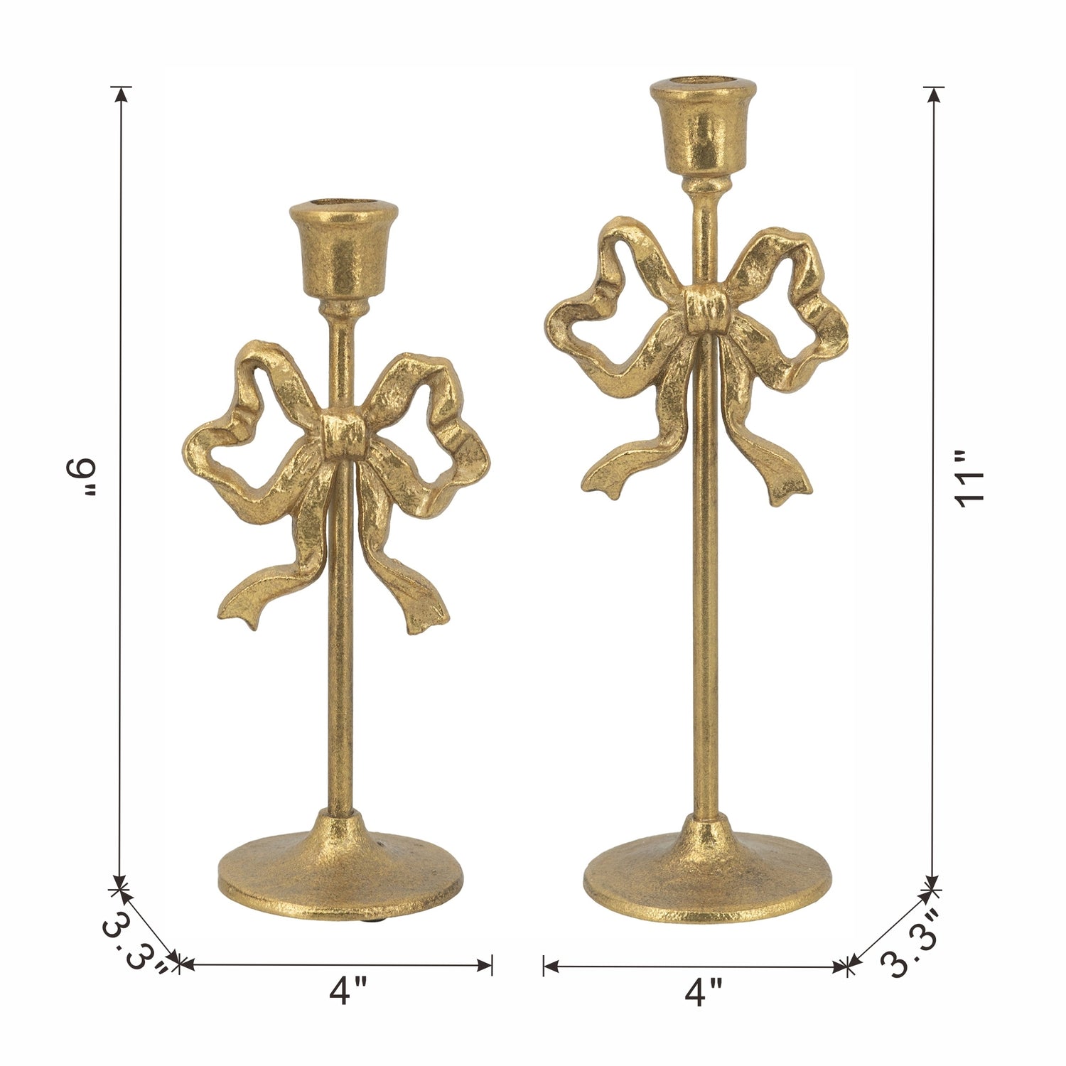 - Inspired by the refined beauty of vintage European design, each candle holder features a rich gold finish, a sturdy pedestal base, and a slender stem adorned with a delightful bow accent.