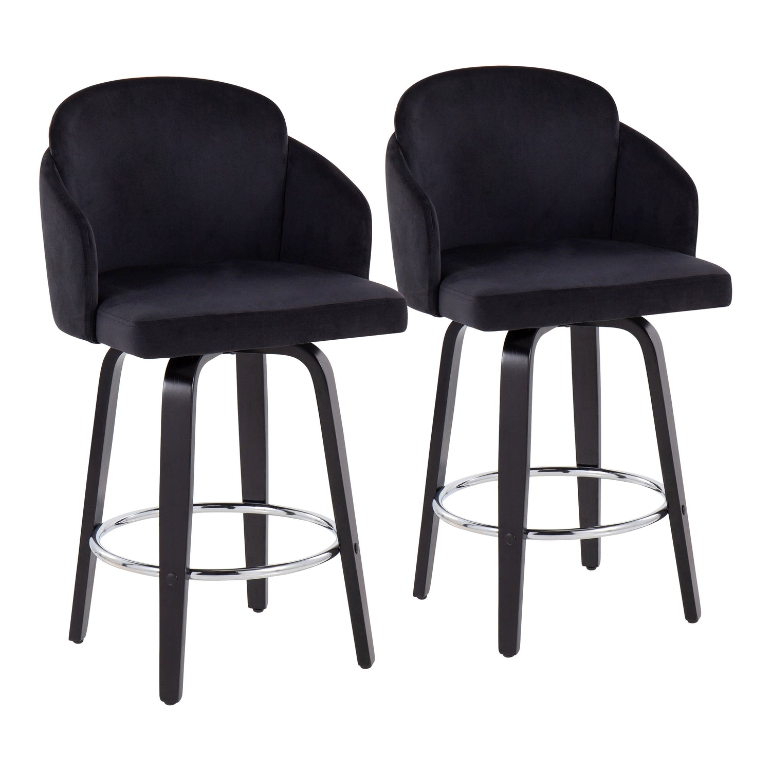 Contemporary Counter Stool in Black Wood and Black Velvet - Set of 2