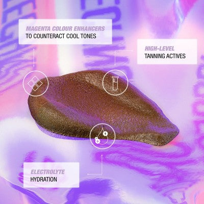 Using Dermachromatic™ Color Technology, Technocolor Magenta 1 Hour Express Self Tanning Foam has been formulated with high-level tanning active ingredients and electrolyte hydration, perfect for olive to deep skin tones looking to achieve a rich, deep-toned tan. Featuring a red-violet color guide to counteract the development of cool tones, Technocolor is available in a 1 Hour Express Foam format and can be washed off after one hour of wear for enhanced, natural skin results.
