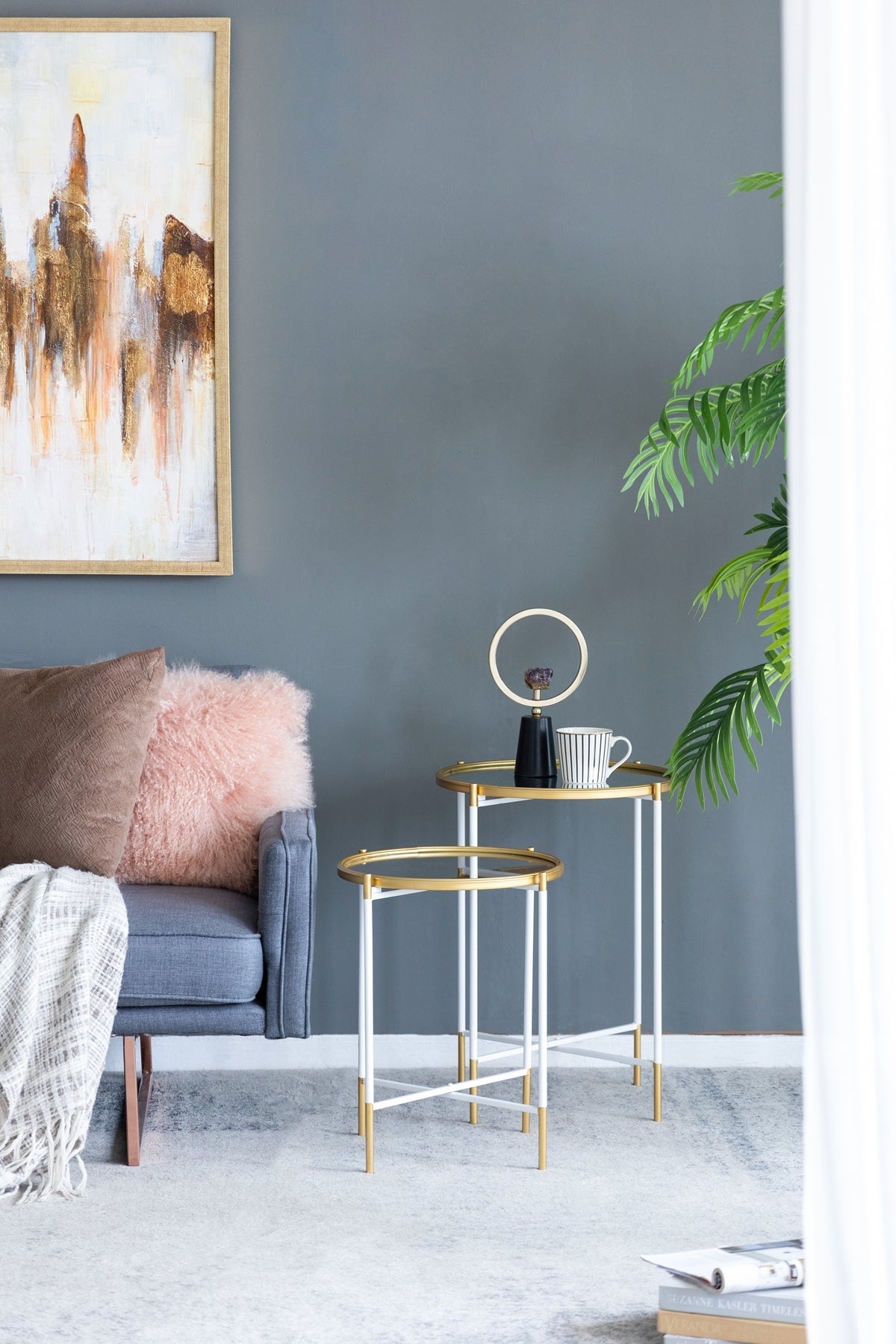 - Whether used as nightstands, end tables, or display pedestals, they add graceful deco-modern charm to any room. When not in use, the convenient nesting design allows for easy, space-saving storage.