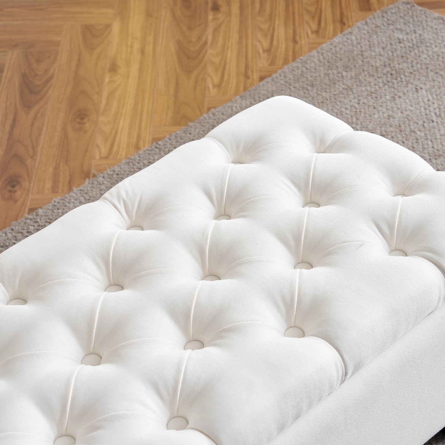 Contemporary Button-Tufted Diamond-Stitched Storage Ottoman,White Fabric, 51.57