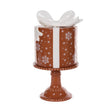Elevate your holiday desserts with our GINGERBREAD PRESENT CAKE STAND. Playfully shaped like a festive present, this stand adds a touch of whimsy to any table. Made with sturdy gingerbread-inspired material.