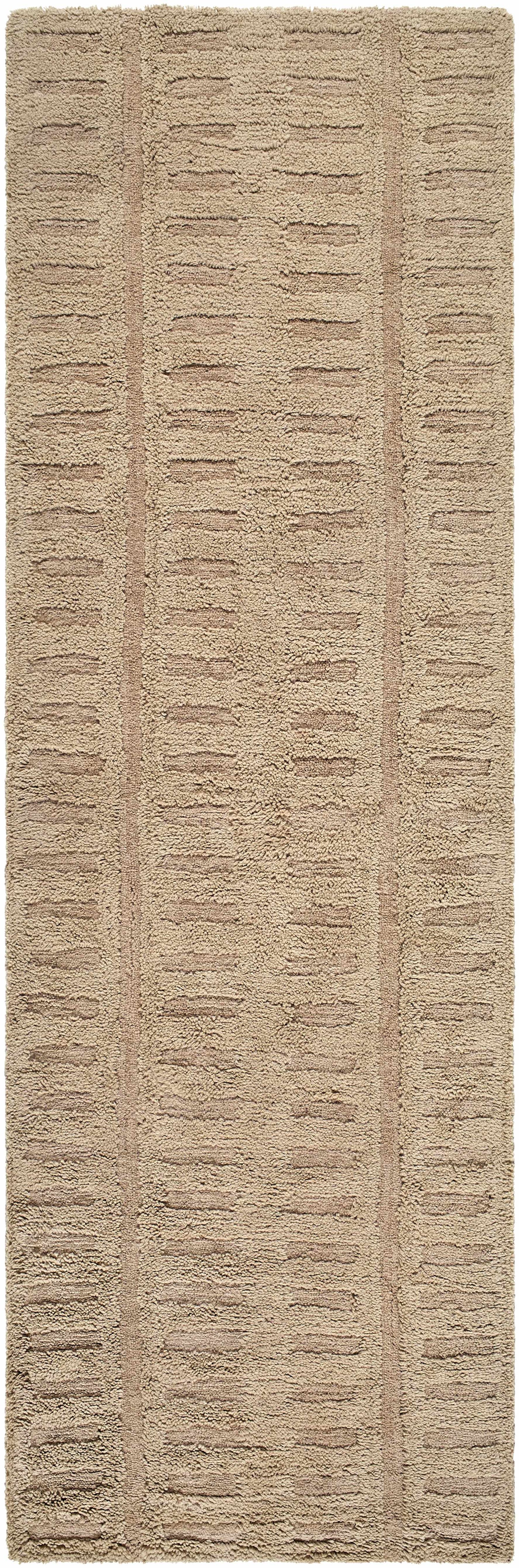 Transform your living space into an oasis of luxury with the intricate hand tufted construction of this exquisite wool rug. Indulge in the velvety high pile and elevated 0.7 inch thickness that adds a touch of sophistication to any room. The lavish taupe, prairie dust, and brown hues complement the contemporary revival, broken striped style, making it the perfect statement piece for your home. And the best part? You can easily maintain its pristine appearance by simply tossing it in the washing machine, making it a practical and affordable alternative to Tscudi.