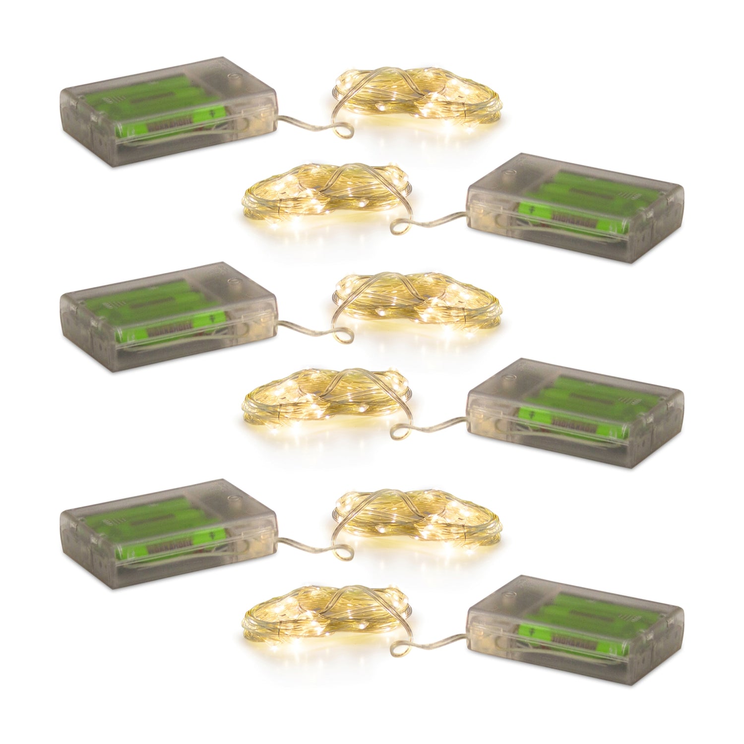 Illuminate your home decor with this set of Mini LED String Light strands. Featuring six total pieces, this set includes a timer function as well as 40 mini LED lights per strand. Add this accent decor piece to your LED candle display, faux floral arrangements, and other tabletop decor. Requires 3 AA batteries (not included).