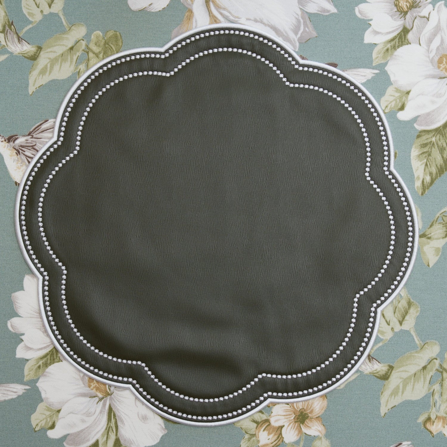 NURTURE GREEN SCALLOPED FAUX LEATHER PLACEMAT