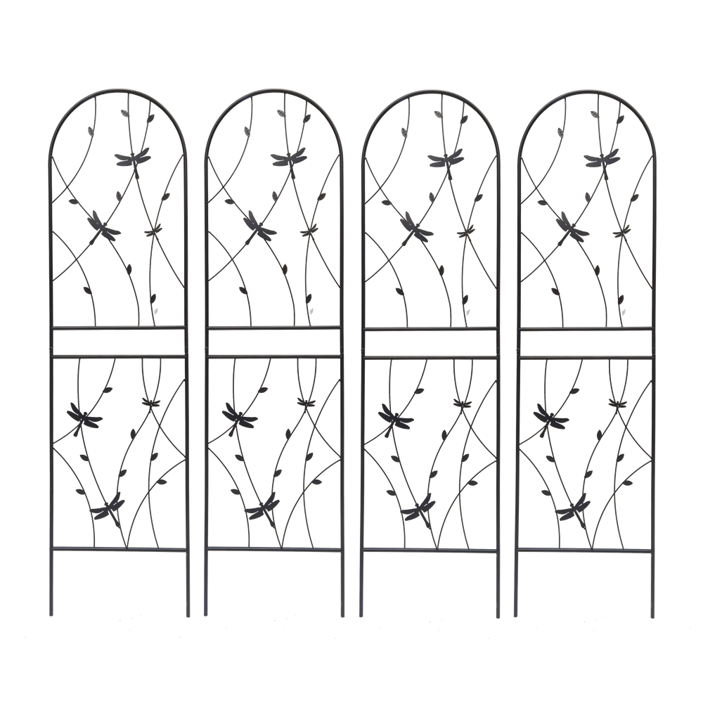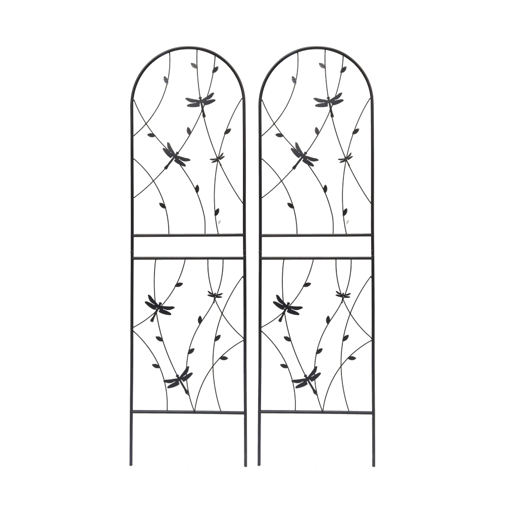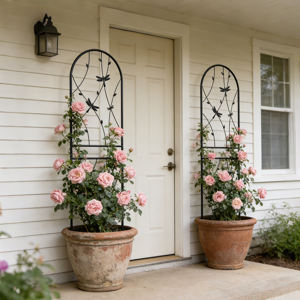 This 2 pack metal garden trellis set is designed to provide sturdy support for climbing plants in outdoor spaces such as gardens, patios, or balconies. Its rustproof finish ensures durability while adding decorative height and structure to your planting area.