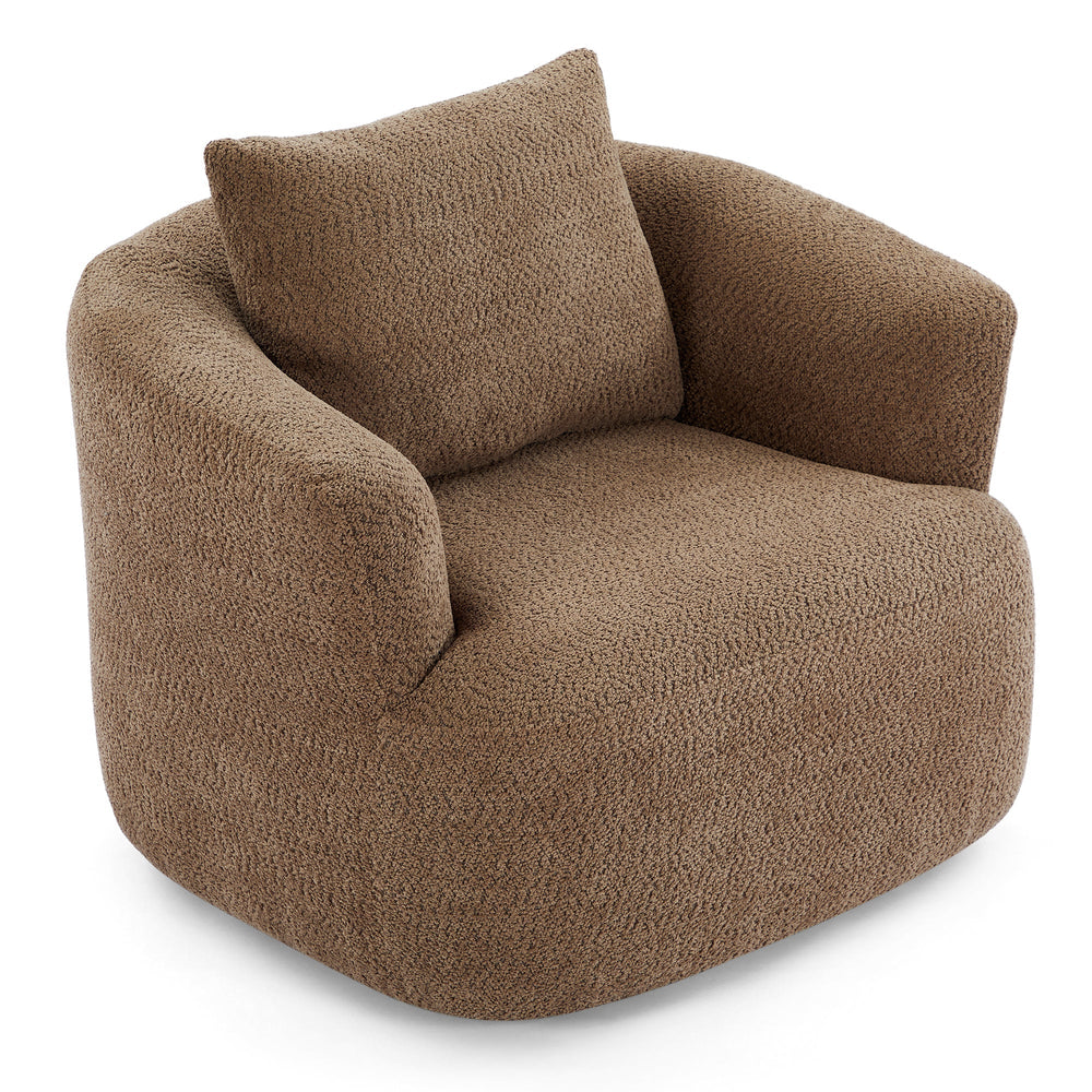 Chenille Upholstered 360° Swivel Chair with Throw Pillow, Dark Brown