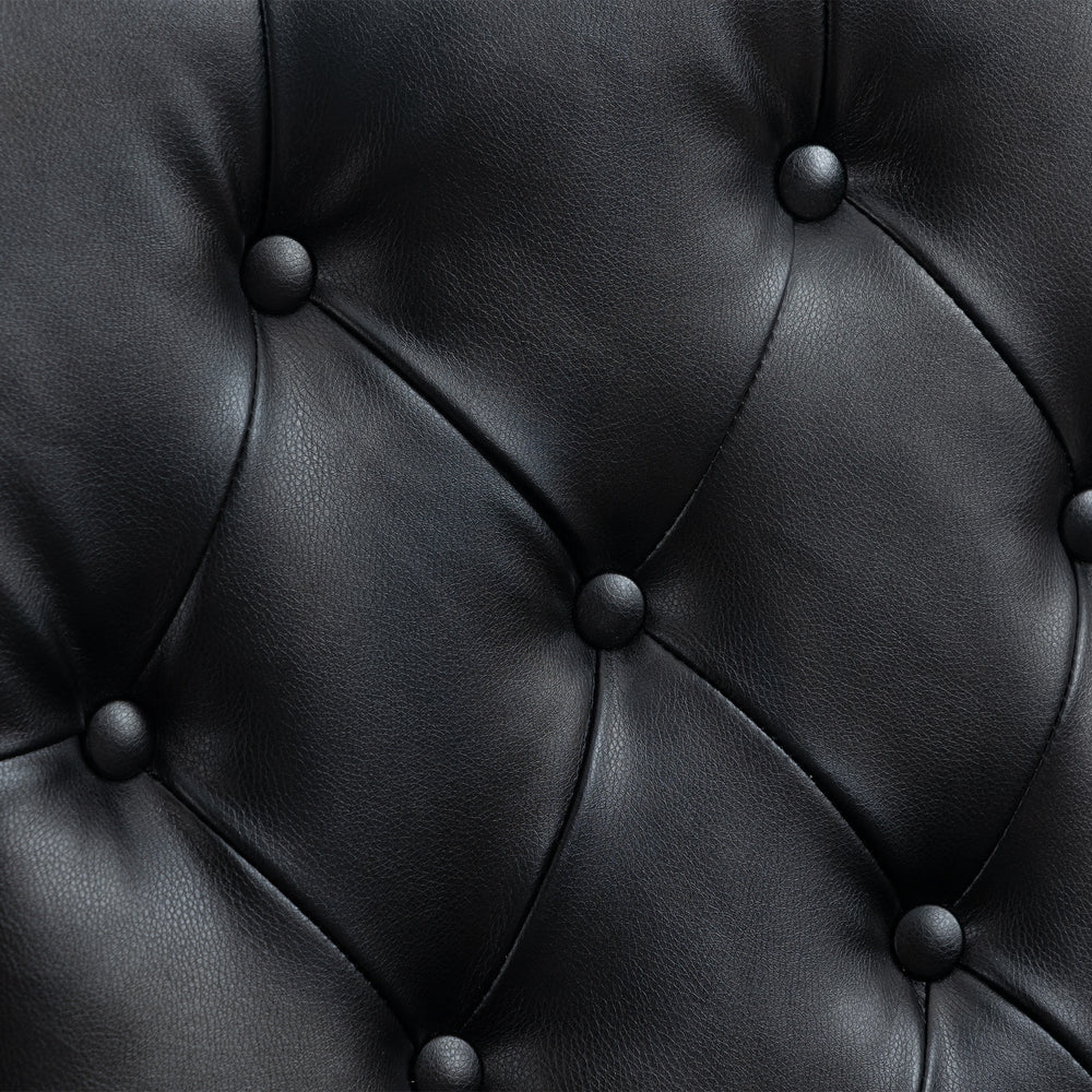 This modern accent armchair features a stylish design with black PU leather upholstery and sturdy wood legs, making it an ideal seating option for living rooms or bedrooms where comfort and elegance are desired.
