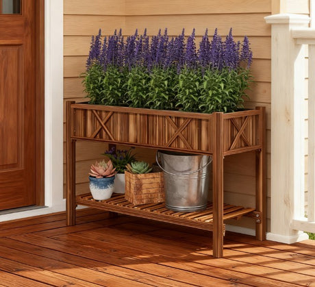 Dual-Tier Raised Garden Bed, Elevated Wood Planter Box