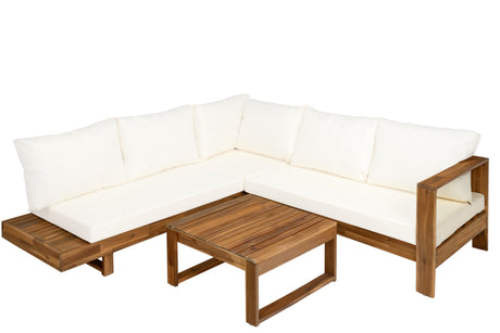 Outdoor 4pc Acacia Wood Sectional Patio Sofa Set