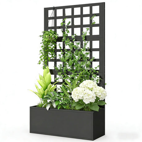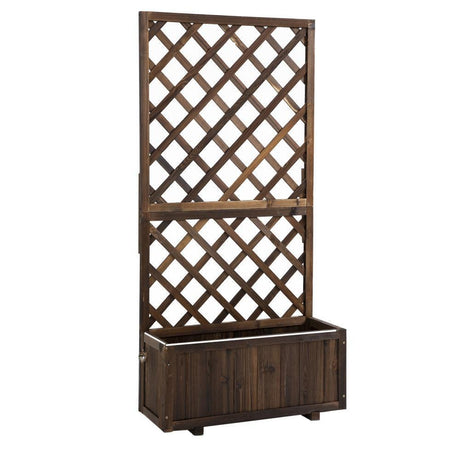 Wooden Raised Garden Bed Planter with Trellis and Drain Holes