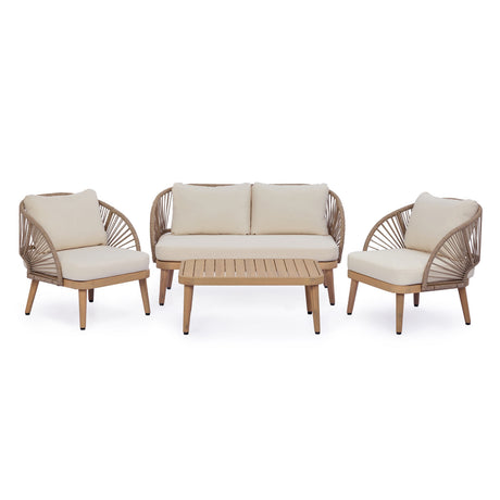 Outdoor Dining Set with Acacia Wood Table and 4 Chairs - Beige