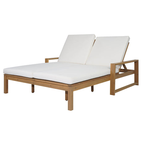 Lounge Chaise Set, Acacia Solid Wood with Cream Lounge Cushion