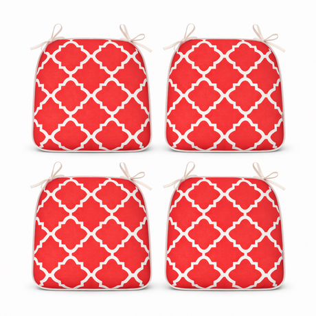 Outdoor Chair Cushions Seat Cushions with Straps, Set of 4, Plaid Red