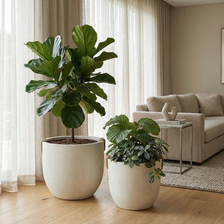 Round Concrete Planter Set of 2, Large Handmade Off White Pots
