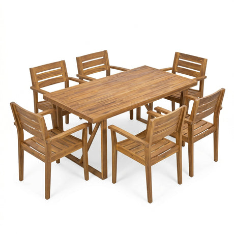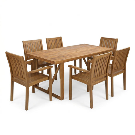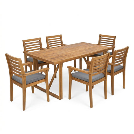 7 Pieces Acacia Wood Outdoor Dining Set – Modern Style