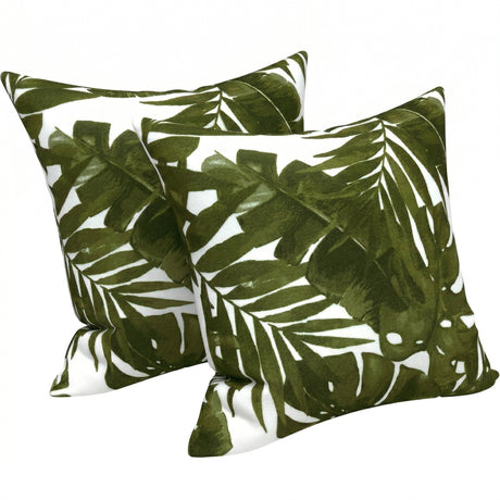 2 Pack Outdoor Throw Pillows, Waterproof & Fade-Resistant (18x18 Inch, Green Leaf)