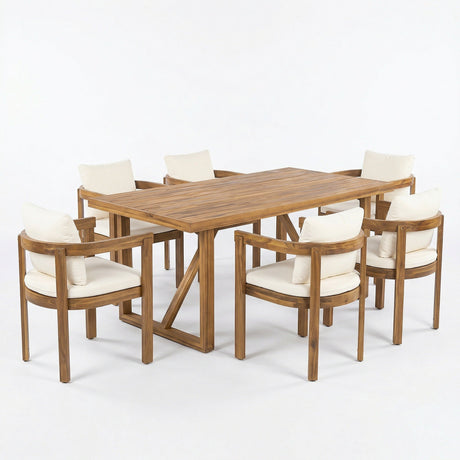 7 Pieces Acacia Wood Outdoor Dining Set with Cream Cushions