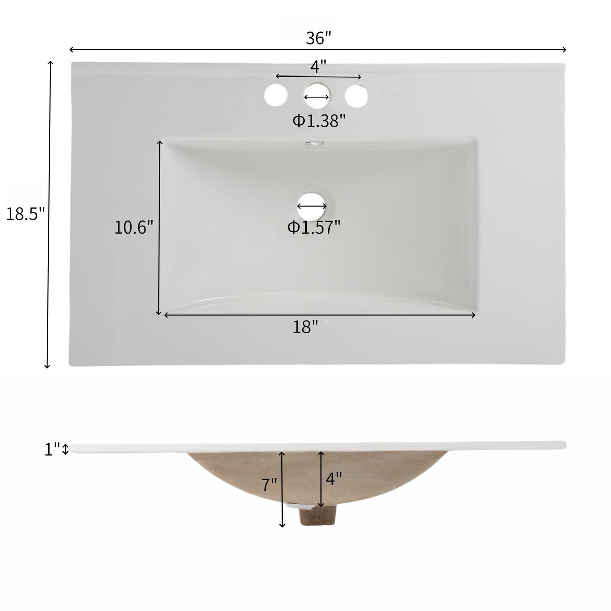 The integrated ceramic sink, finished in a lustrous lead-free glaze, features a gently sloped basin for optimal water flow and splash control. Pre-drilled for a 4" widespread faucet (not included), the design accommodates premium hardware while offering a spacious, easy-to-clean countertop that resists staining and wear.