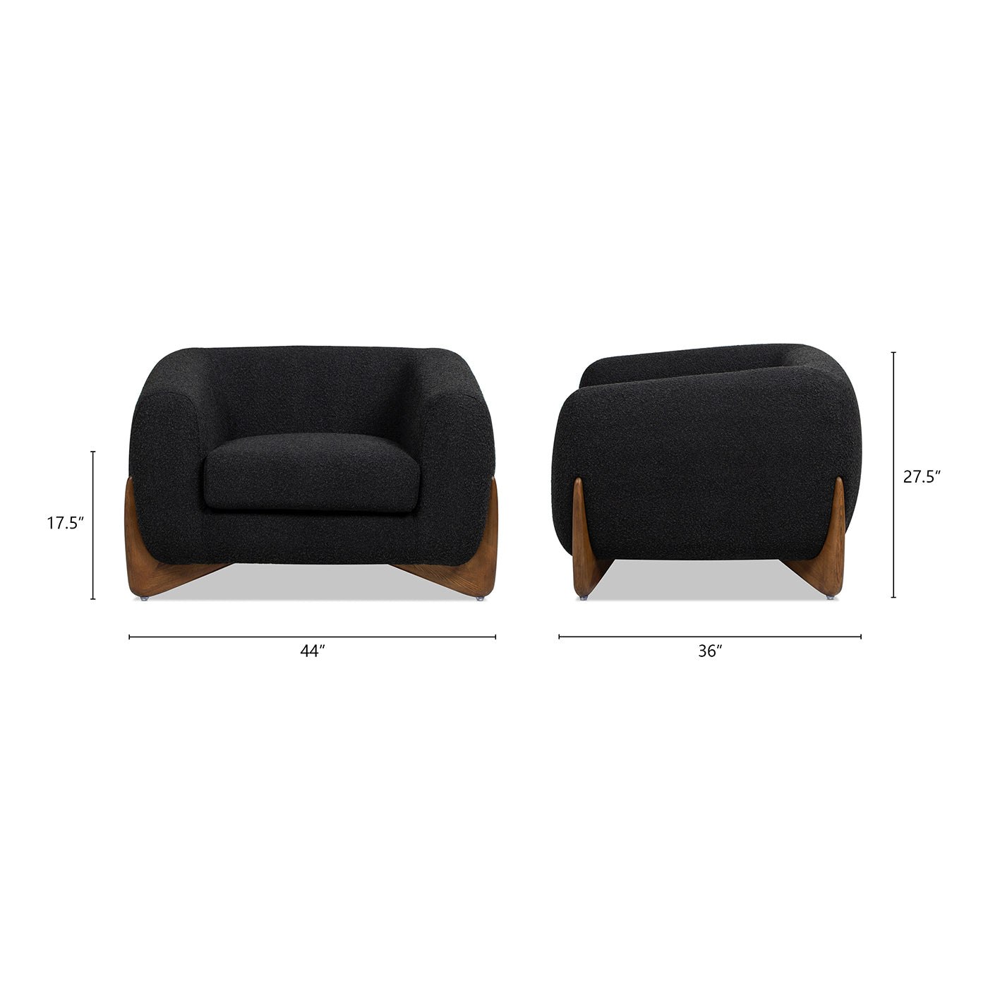 Upholstered in a faux sherpa bouclé of dimensional, nubby texture, the chair evokes the cozy intimacy of a Nordic chalet, balancing warmth and modern elegance. Its generously proportioned 24-inch seat depth welcomes lingering moments with a book, a blanket, or peaceful reflection.